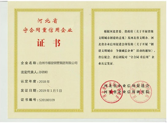 河北省守合同重信用企業(yè)