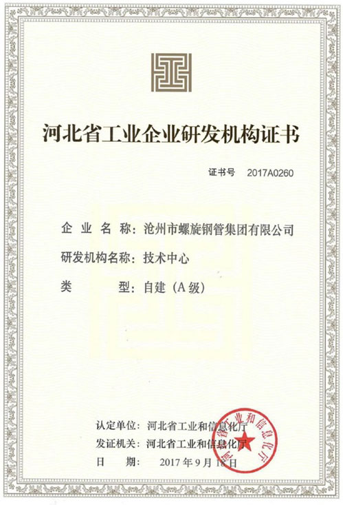河北省工業(yè)企業(yè)研發(fā)機構(gòu)證書